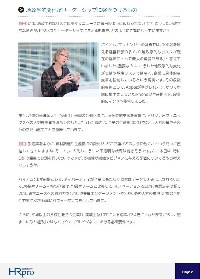 米国DDI社 CEOのテイシー・M・バイアム博士との対談記事を通じて、