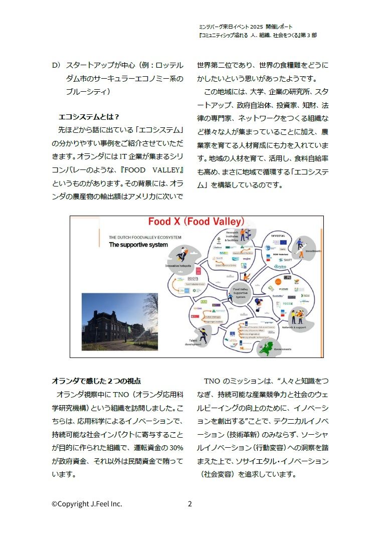 本資料の第三部前半では、ジェイフィールメンバーが現地視察をしたオランダとフィンランドのエコシステム社会についてご紹介です。