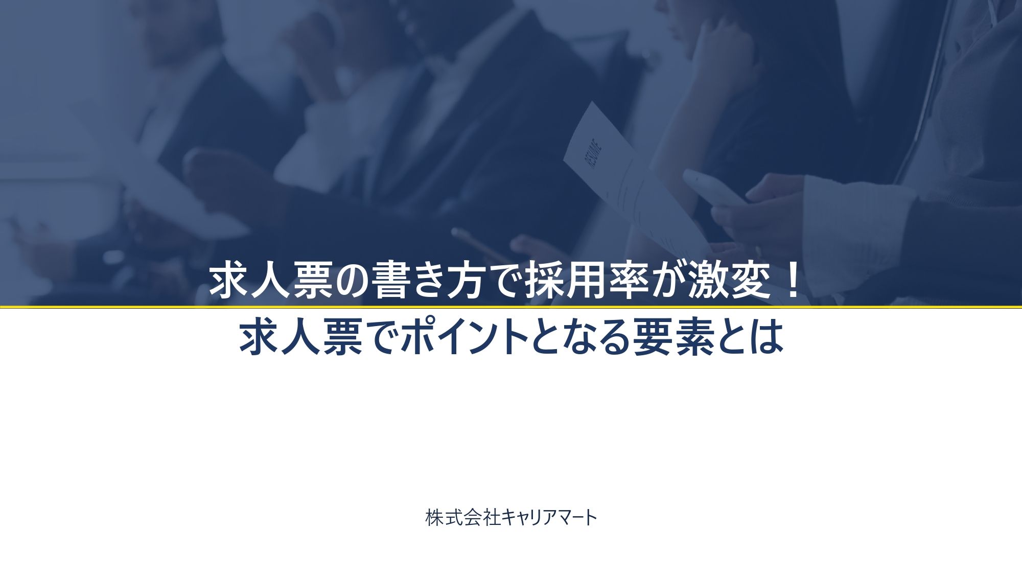 本資料では、作成の際注意すべき項目から求人票の役割、そして採用率をアップさせる求人票づくりのコツをお伝えします。
