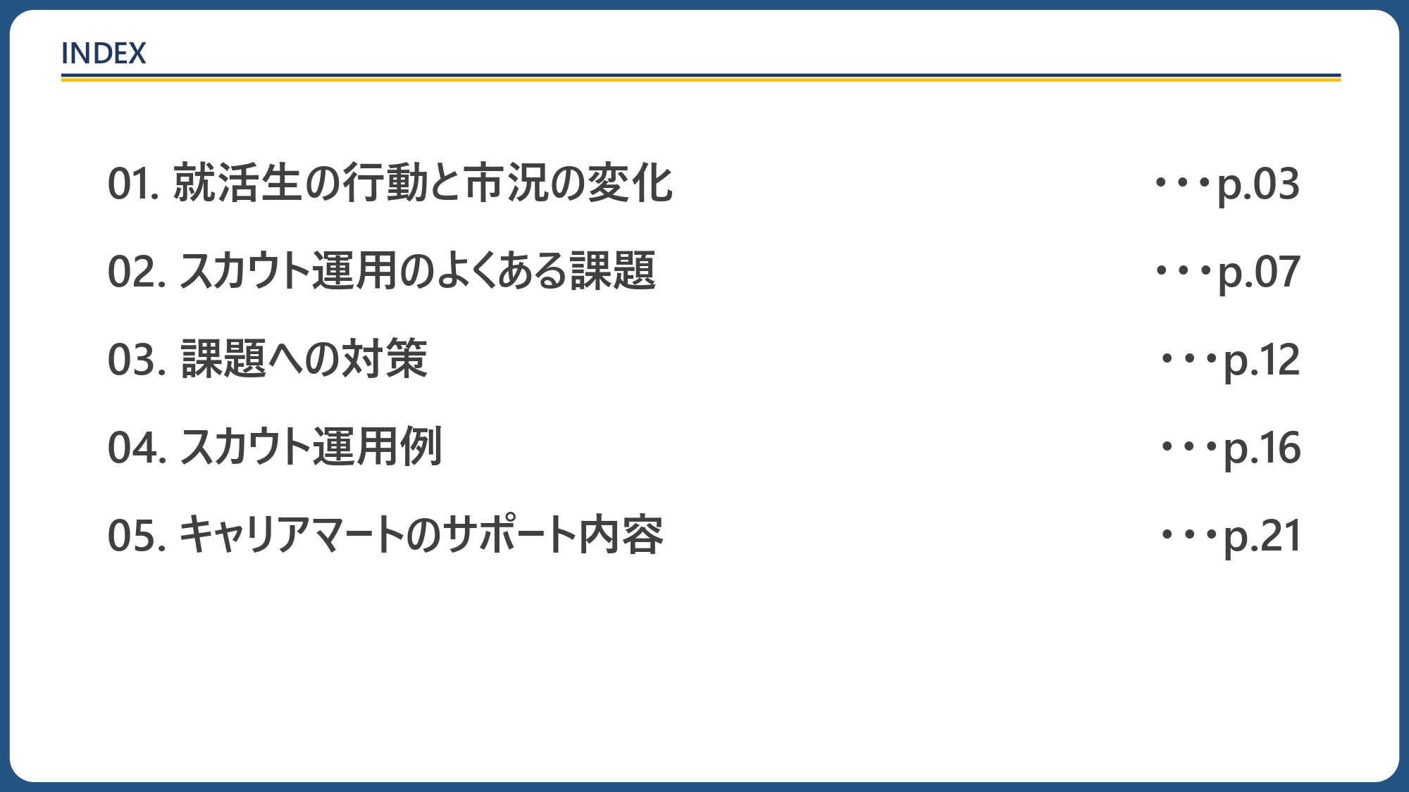 01. 就活生の行動と市況の変化02. スカウト運用のよくある課題
