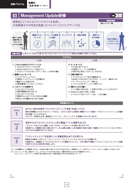目的・階層・職能ごとに整理した66種類の研修プログラムをまとめました。