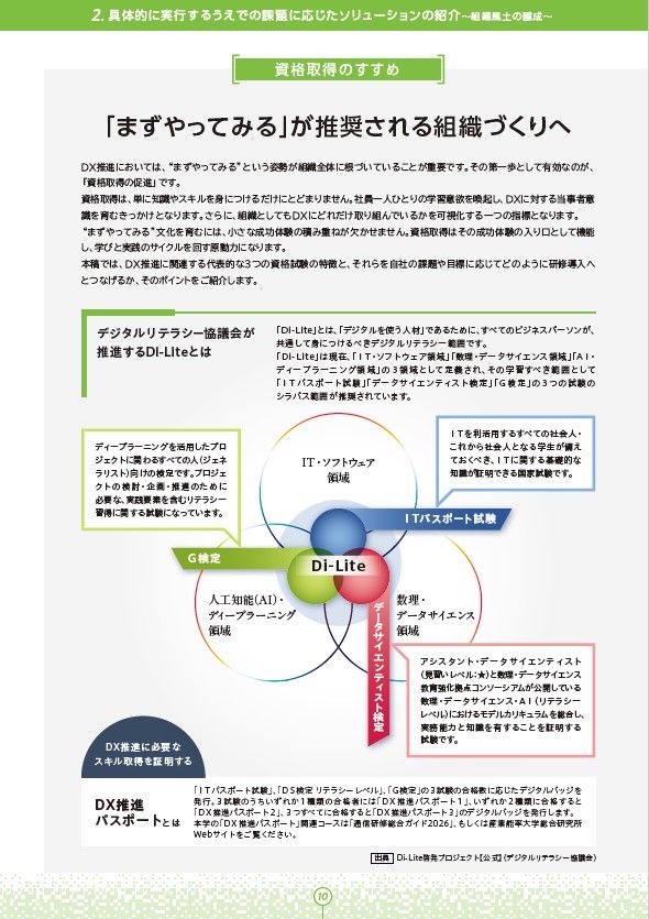 この冊子では、DXを推進するために必要な人材育成に関する実践的な情報を提供しています。