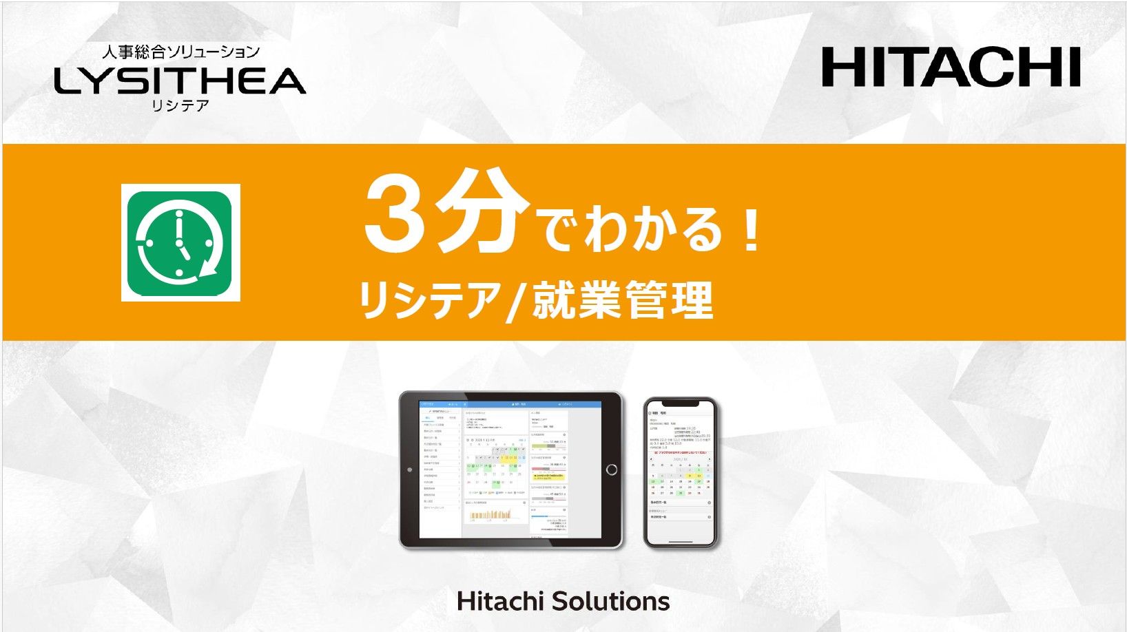 こちらは「リシテア/就業管理」の製品の特長や機能、解決できることなどがサクッと3分で分かる資料です。