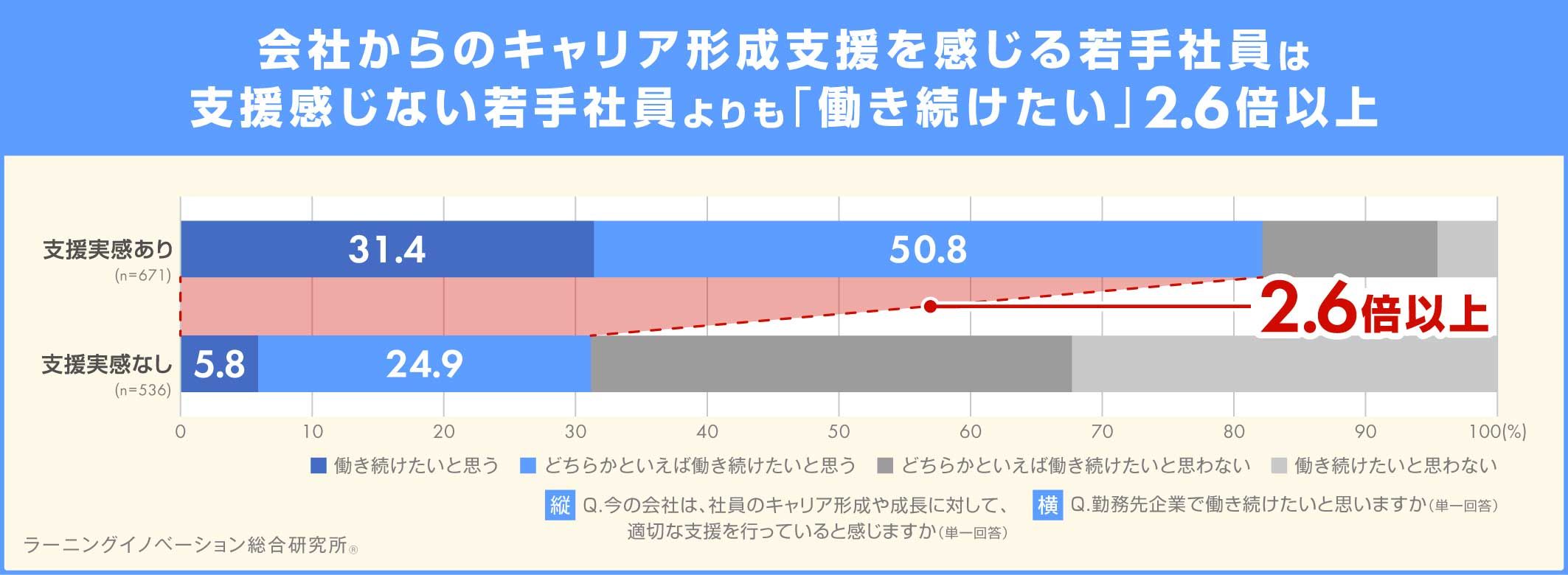 3、若手社員に聞いてわかった、「支援の有無による勤続意向」