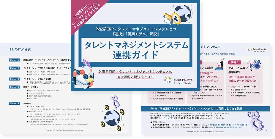 本資料では、外資系ERPのデータを基軸に、タレントマネジメントを効果的に実践するための「データ連携の具体例」や「システム活用のポイント」を解説。