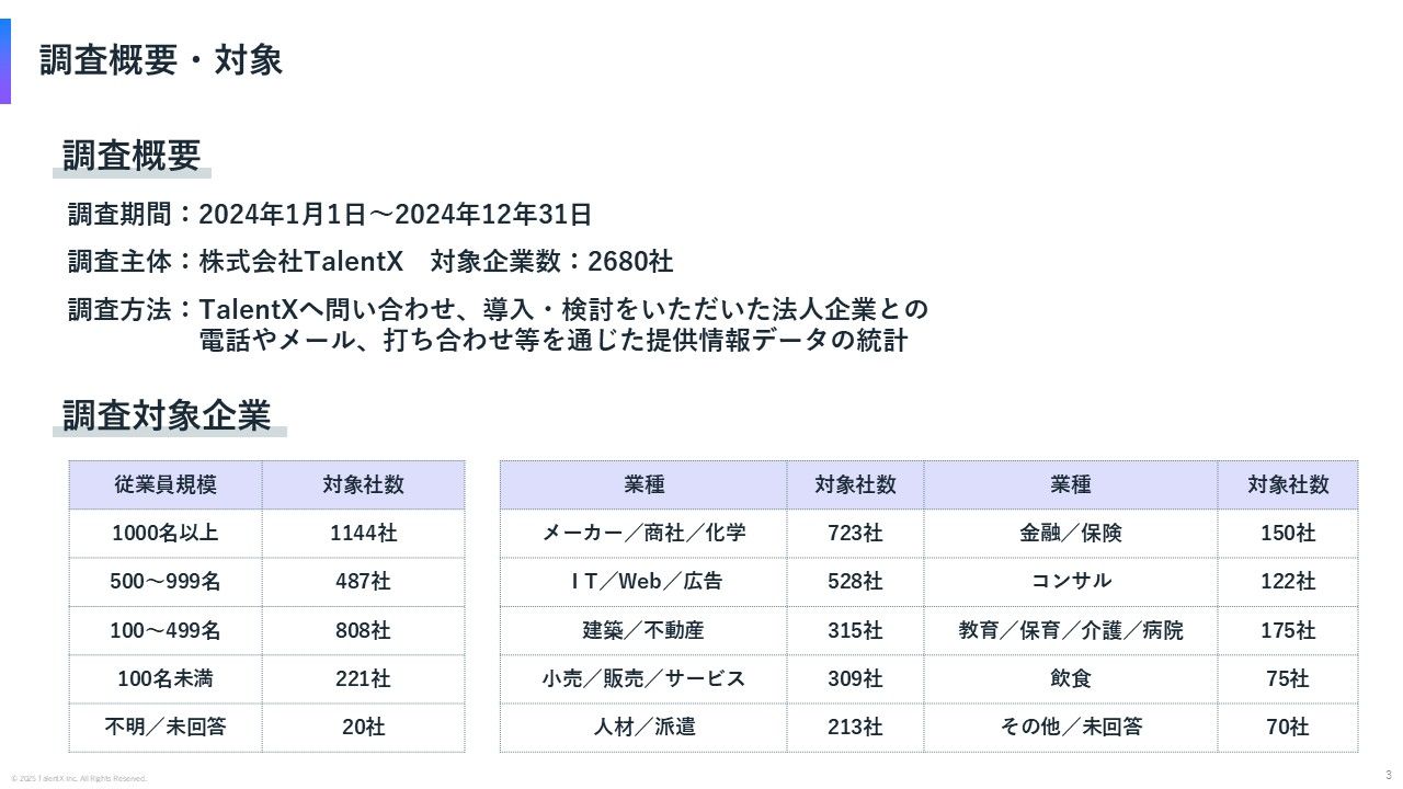 調査主体:株式会社TalentX 対象企業数:2,680社