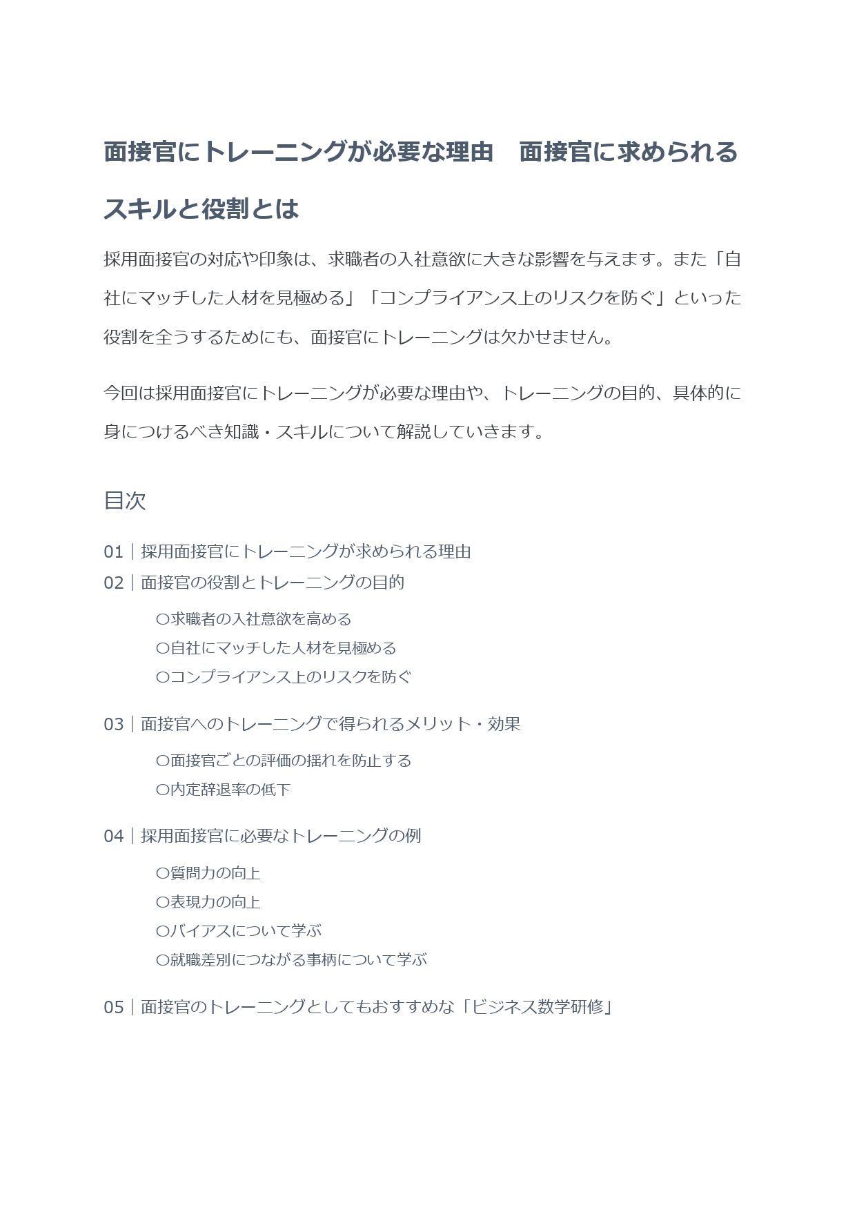 01 採用面接官にトレーニングが求められる理由02 面接官の役割とトレーニングの目的