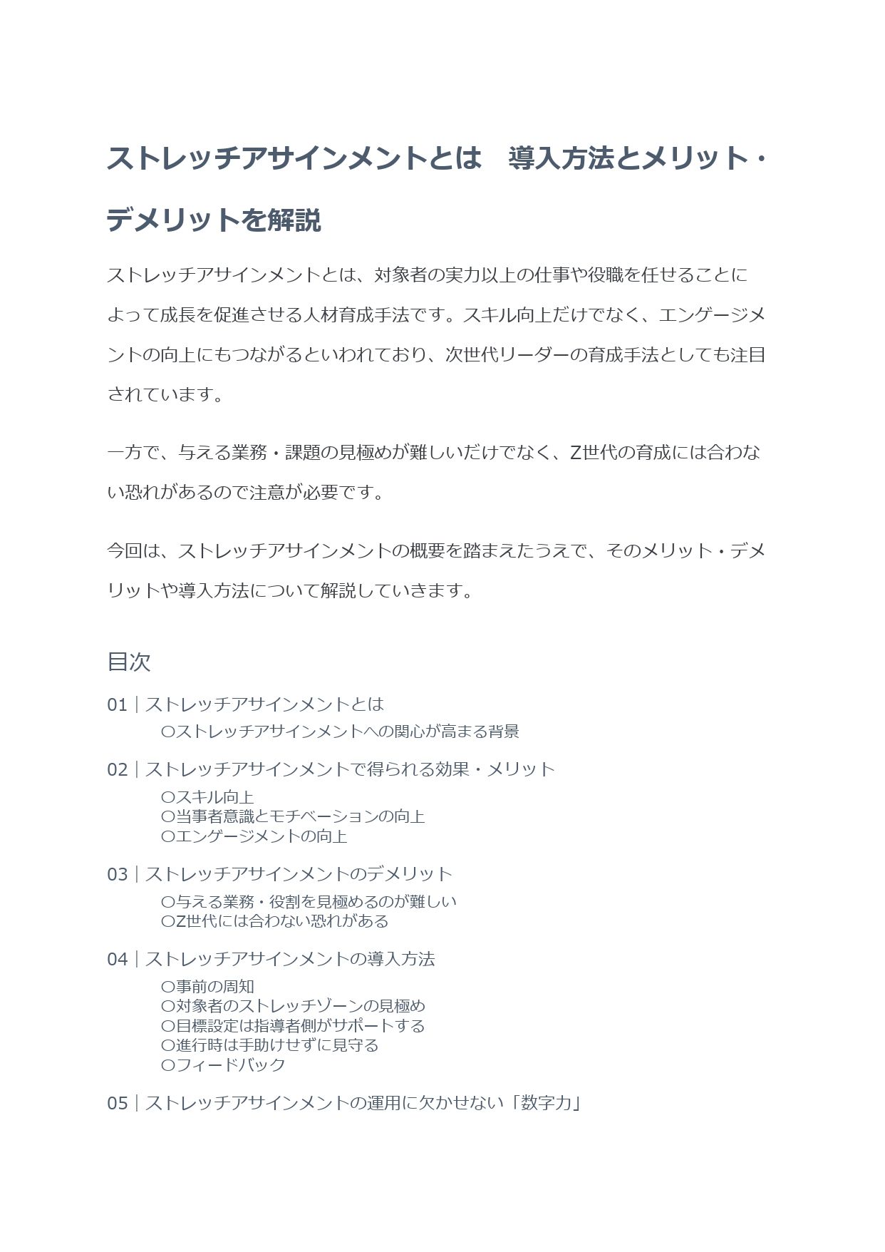 今回は、ストレッチアサインメントの概要を踏まえたうえで、そのメリット・デメリットや導入方法について解説していきます。