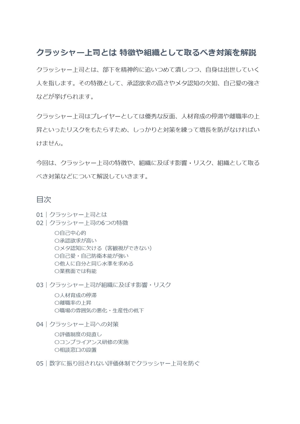 01 クラッシャー上司とは02 クラッシャー上司の6つの特徴