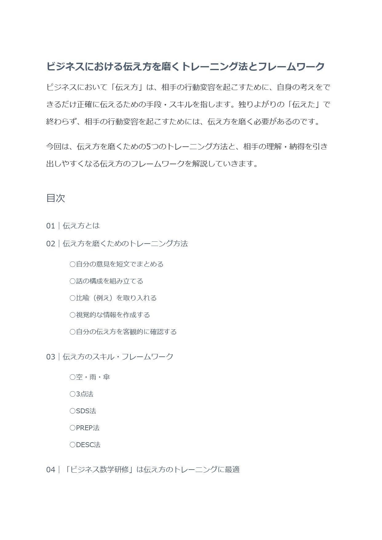 01 伝え方とは02 伝え方を磨くためのトレーニング方法