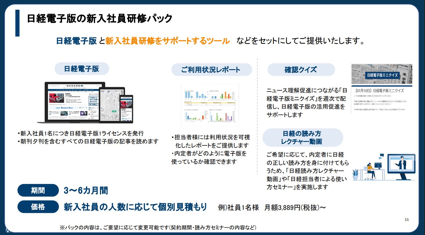 通常の日経電子版法人契約との違いや、研修ご利用ならではのご提供コンテンツ・サポート体制など、