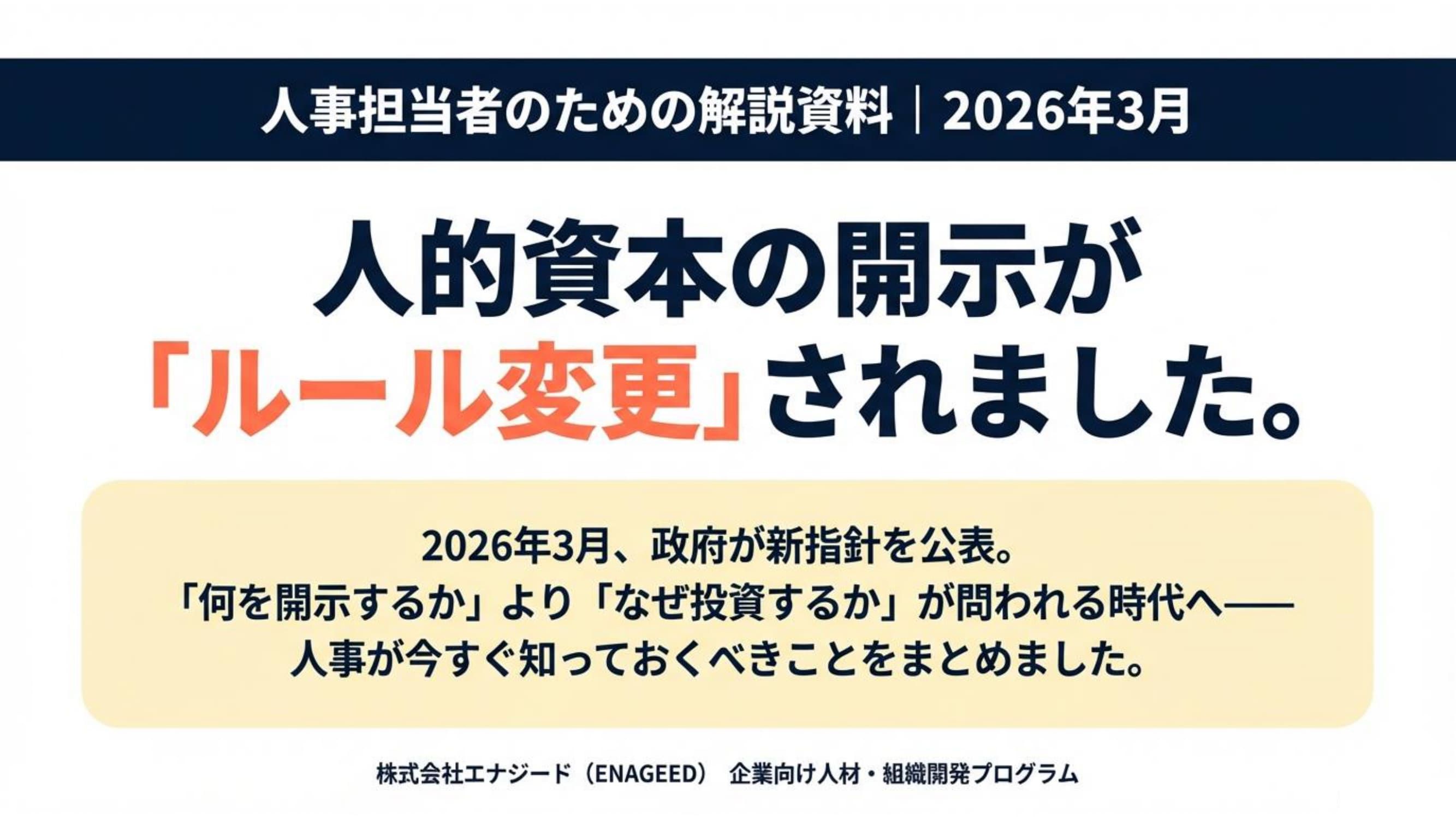 2026年3月の人的資本開示ルール改定を受け、人事が押さえるべき実務対応を整理した資料です。