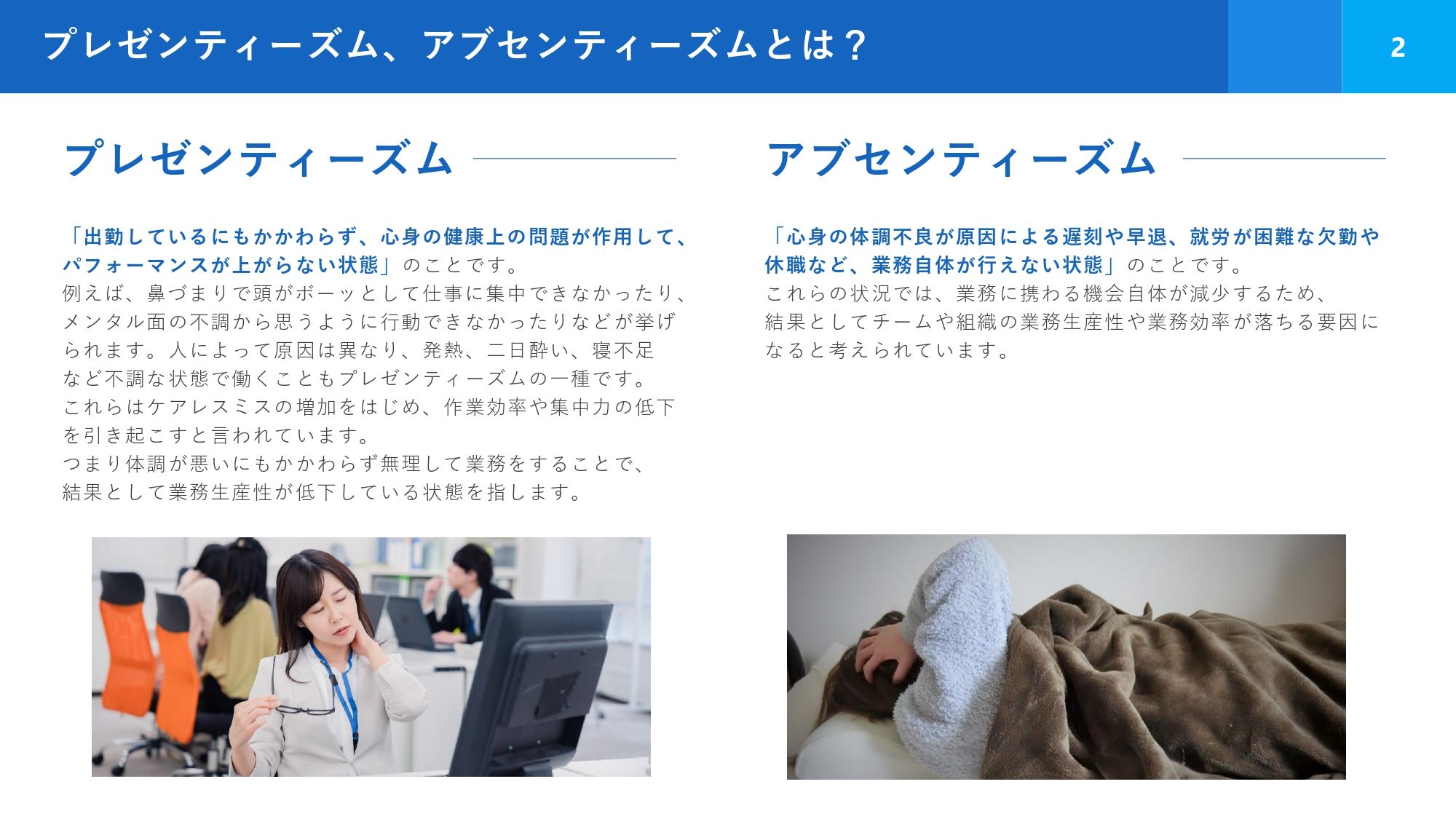 P2.プレゼンティーズム、アブセンティーズムとは?P3.プレゼンティーズム・アブセンティーズムが企業に与える損失