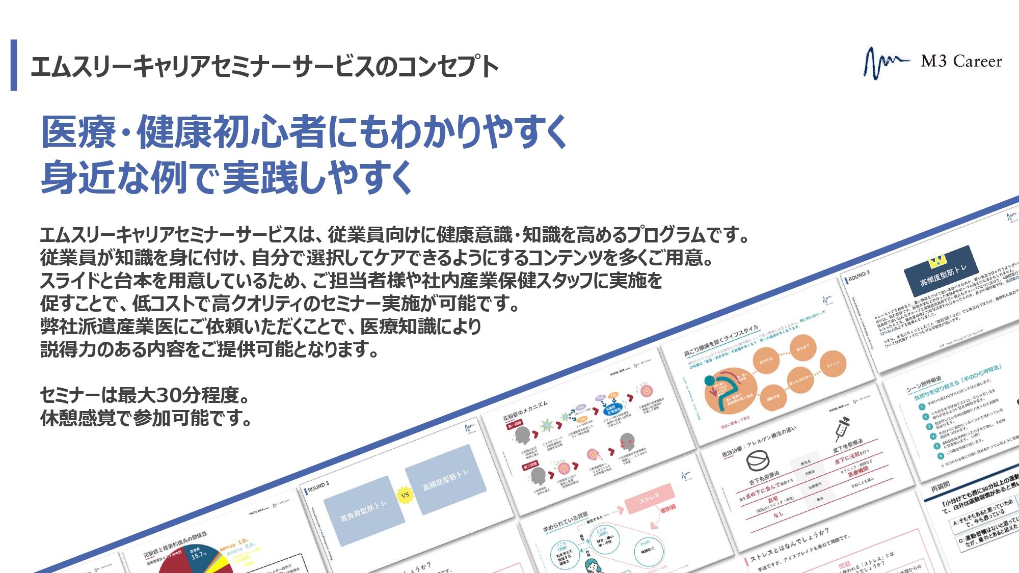 エムスリーキャリアセミナーサービスは、従業員向けに健康意識・知識を高めるプログラムです。