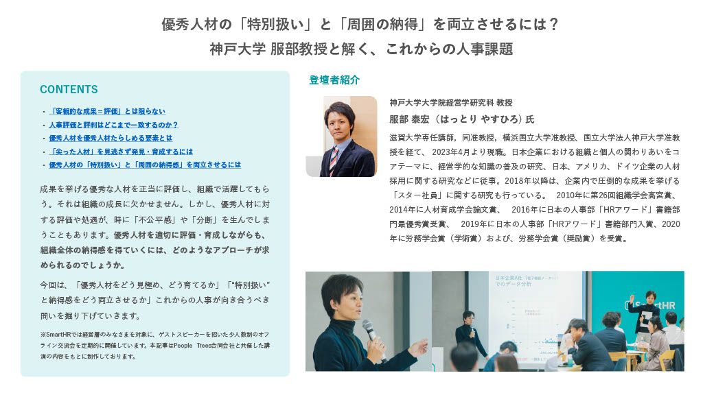 今回は、「優秀人材をどう見極め、どう育てるか」「“特別扱い”と納得感をどう両立させるか」これからの人事が向き合うべき問いを掘り下げていきます。