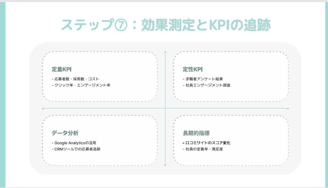 採用に関する課題や施策など、改めて見直しすることができます。 効率的に進めるためにもぜひご確認ください!