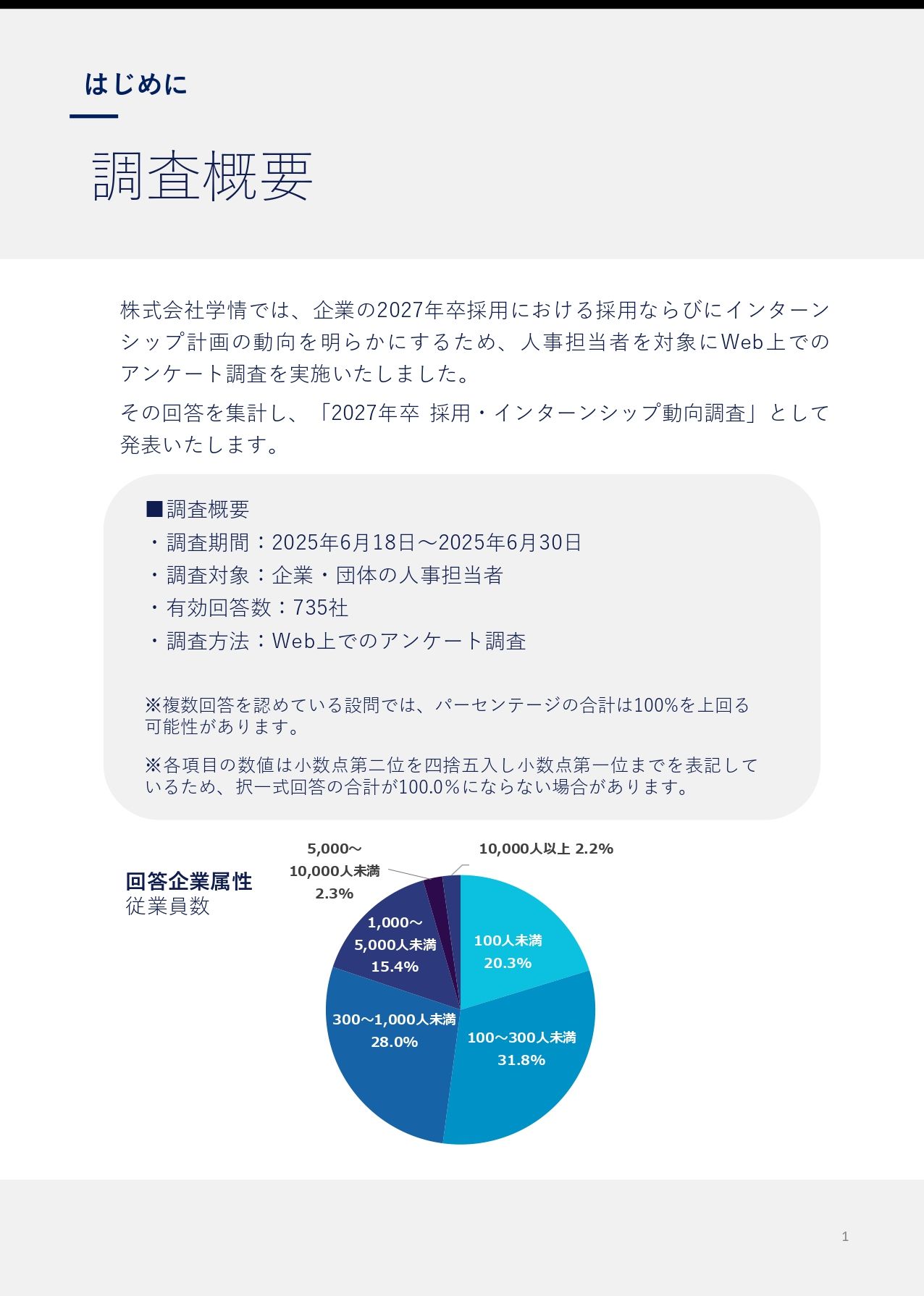 本資料は、735社の人事担当者を対象に実施したアンケートをもとに、最新の採用・インターンシップ計画をまとめたレポートです。
