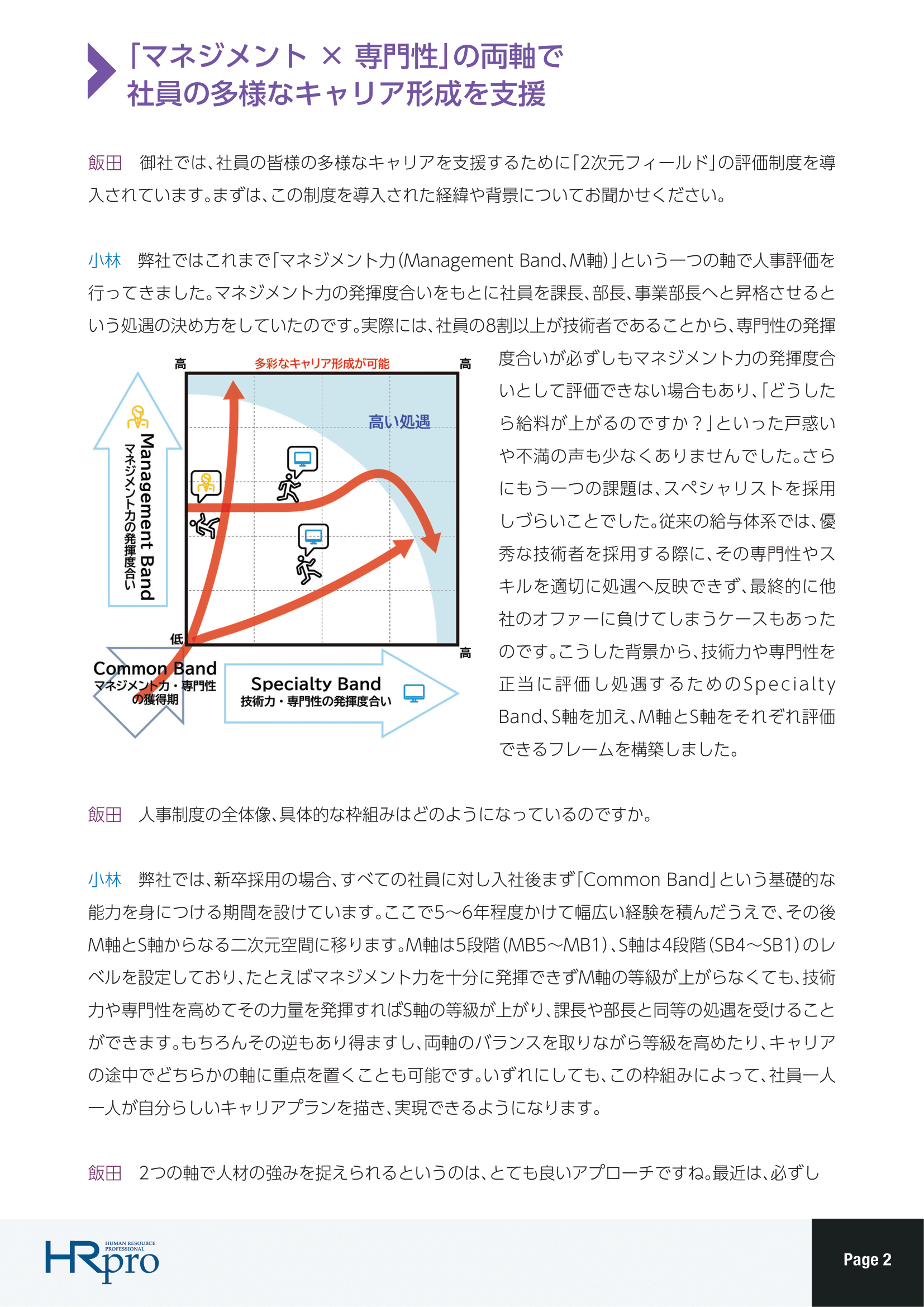 同社は2021年、マネジメント力を評価する「Management Band(M軸)」と、技術力・専門性を評価する「Specialty Band(S軸)」の2軸による評価フレームを構築し、社員一人一人の多様なキャリア実現を後押ししています。
