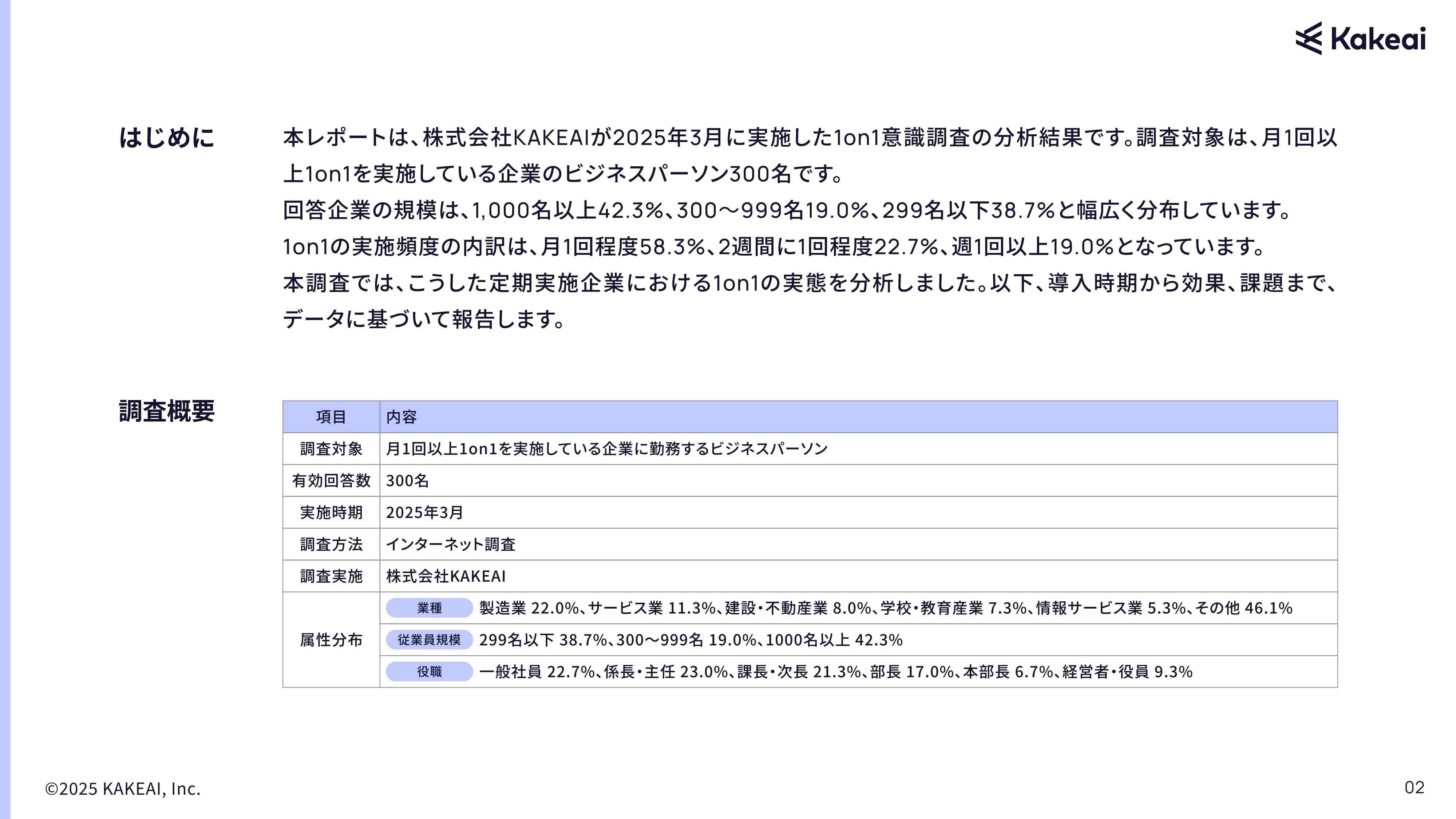 ――そうした人事担当者・マネジャーの皆さまにとって、1on1の成功要因を理解し、自社の施策を見直すきっかけとなる資料です。