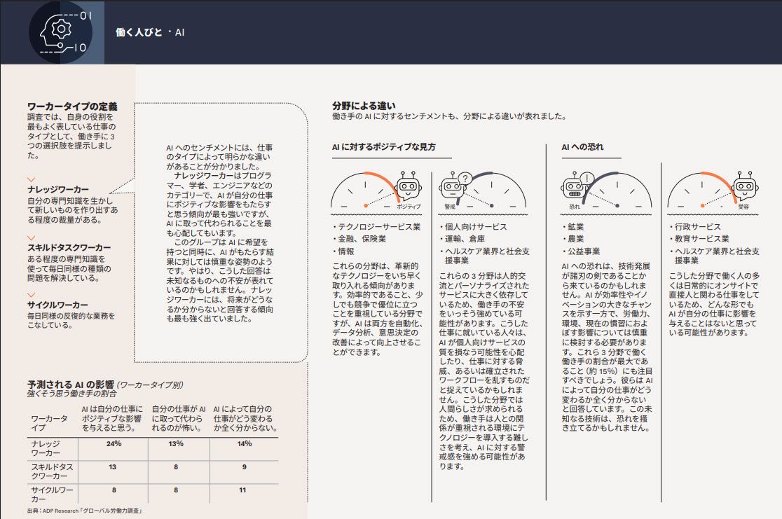 今回初めて「働く人びと」は、ADPリサーチによって2015年以来、毎年実施され信頼が置かれている「グローバル労働力調査」の結果に基づいて作成されました。この調査では、労働市場の情報を働き手の視点から収集しています。働き手の心情や期待をより深く理解することで、仕事の世界を改善するための洞察を提供するのが目的です。
