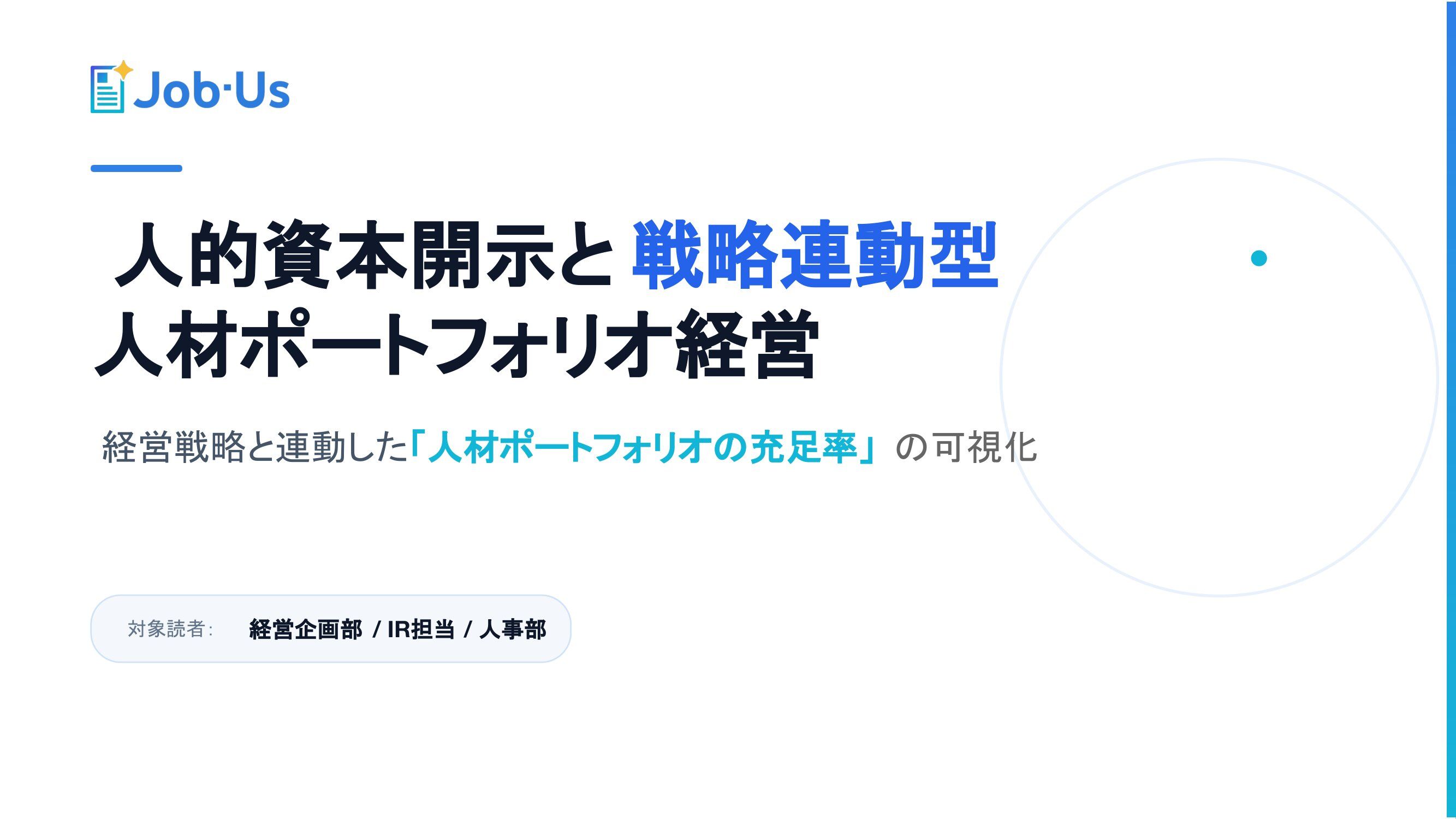 本資料では、経営戦略と連動した定量指標「人材ポートフォリオ充足率」の詳細と、その可視化方法を解説します。