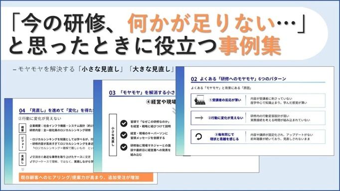 この資料は、「研修自体は悪くないはずなのに、なぜか手応えがない」「現場につながっている感じがしない」といった、人事が抱きがちな“研修へのモヤモヤ”を言語化し、整理した事例集です。