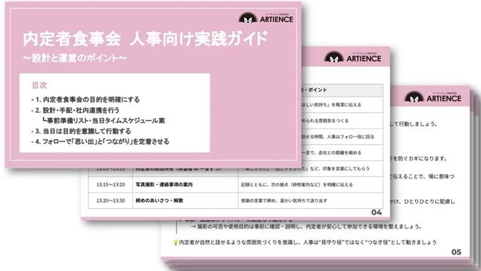 この資料は、内定者食事会を「なんとなく開催するイベント」ではなく、内定者フォローの重要な機会として活かすための人事向け実践ガイドです。