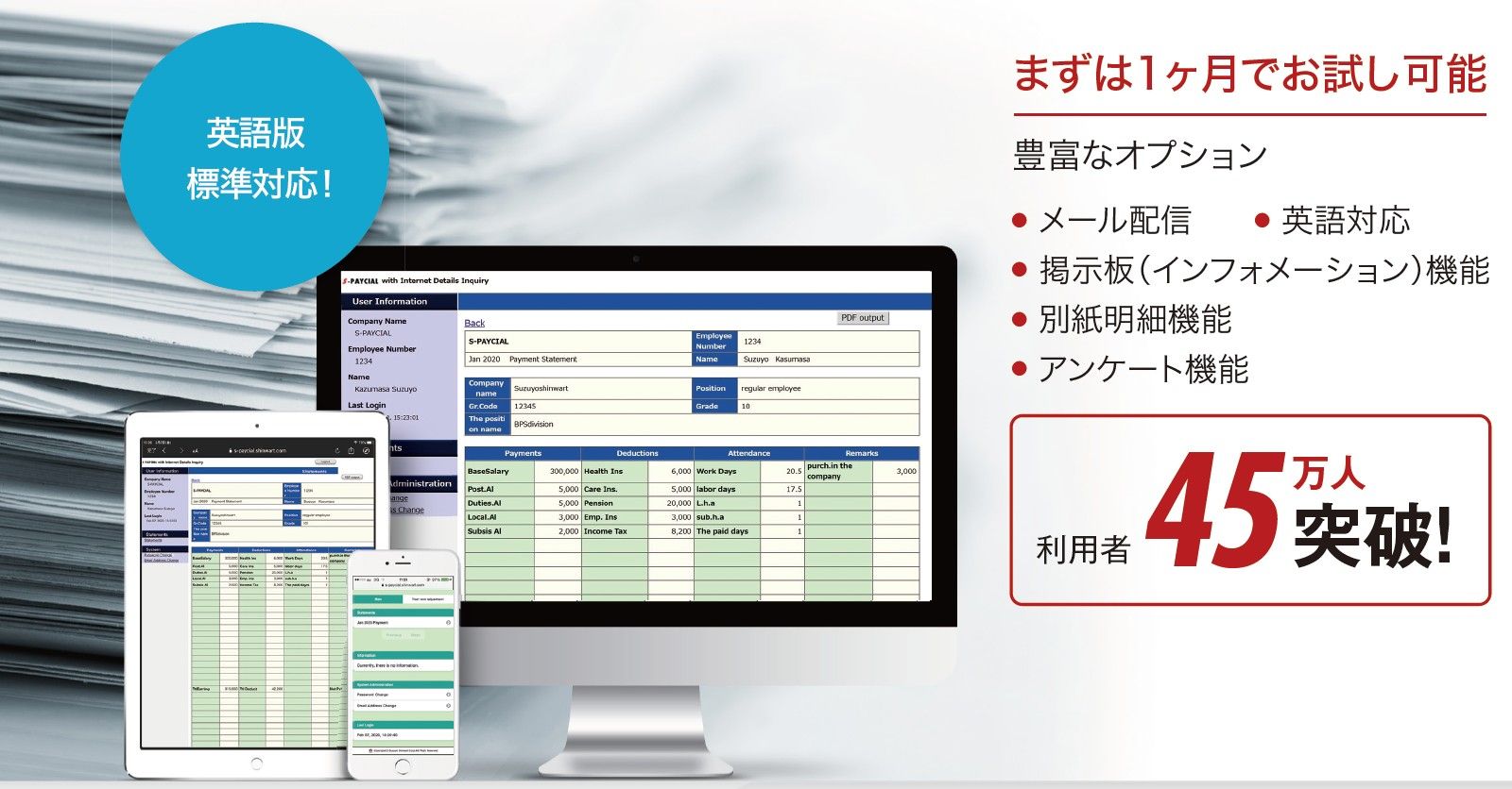 「S-PAYCIAL(エスペイシャル) with 電子給与明細」