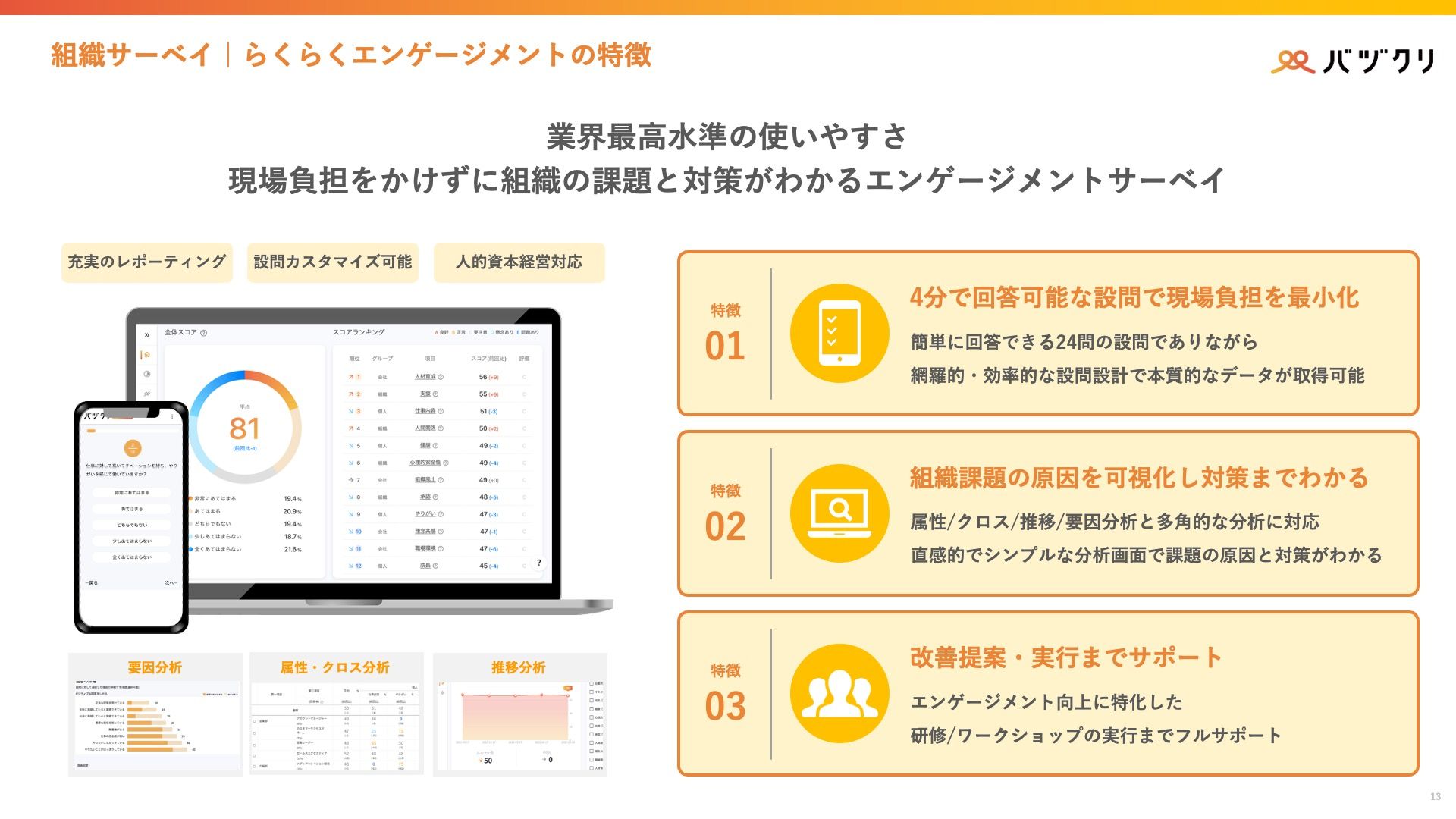 現場の声から生まれた、本当に必要な機能を備えた後発のエンゲージメントサーベイです。